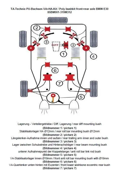 Eigenschaften "TA Technix PU-Buchsen Kit Vorder- /Hinterachse 37-teilig passend für BMW 3er Serie"
