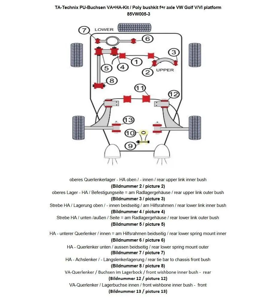 - ersetzt das serienmäßige Gummi / - Metallager