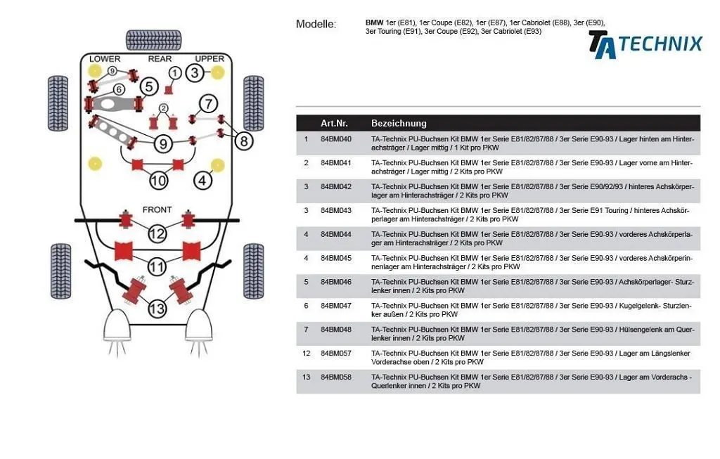- ersetzt das serienmäßige Gummi / - Metallager